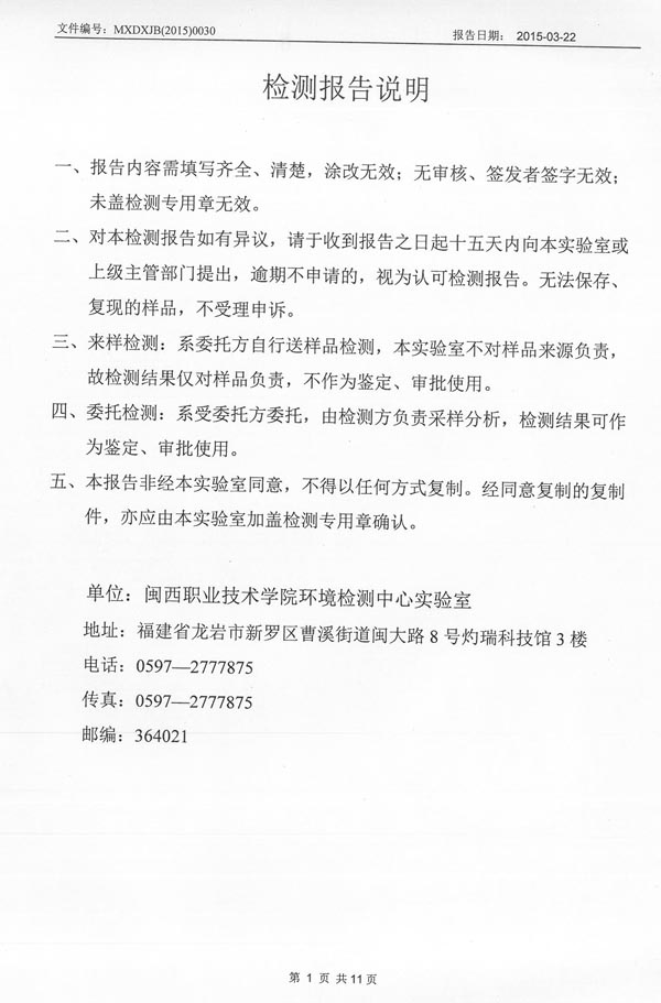 2015年3月環(huán)境檢測(cè)報(bào)告