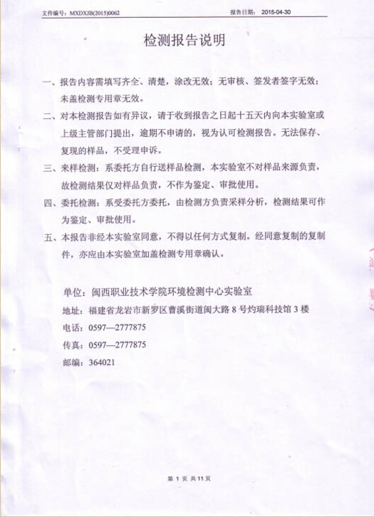 2015年4月環(huán)境檢測報告