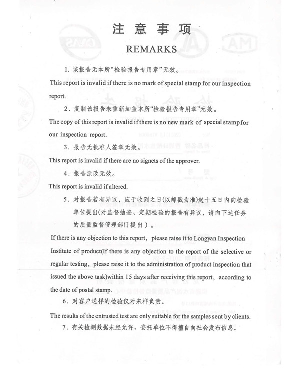 2011年2月18日產(chǎn)品質(zhì)量檢測報告
